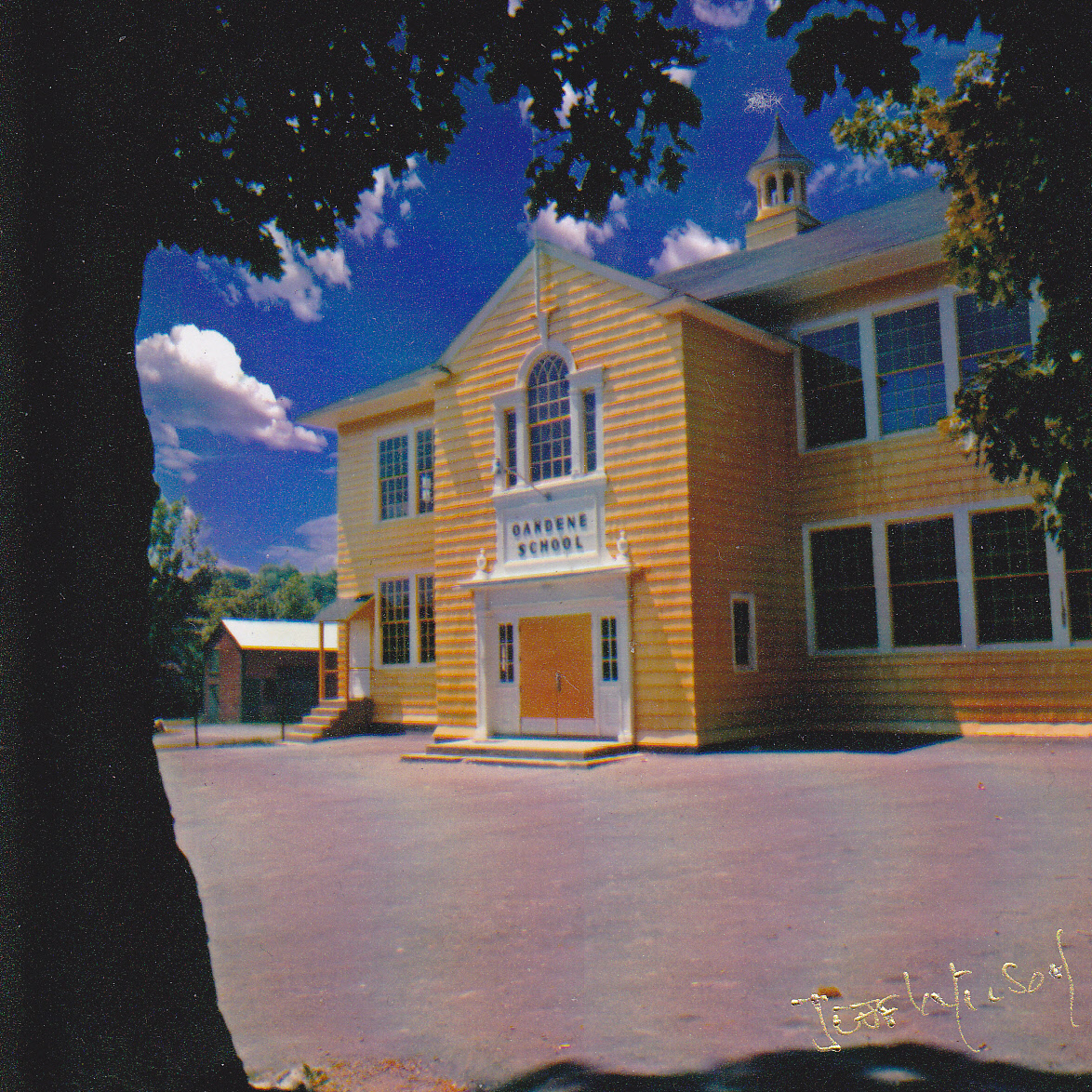Oakdene School Partly Framed by THE Oak (Photo by former late-1940's student, photographer Jeff Wilson of Middleton)