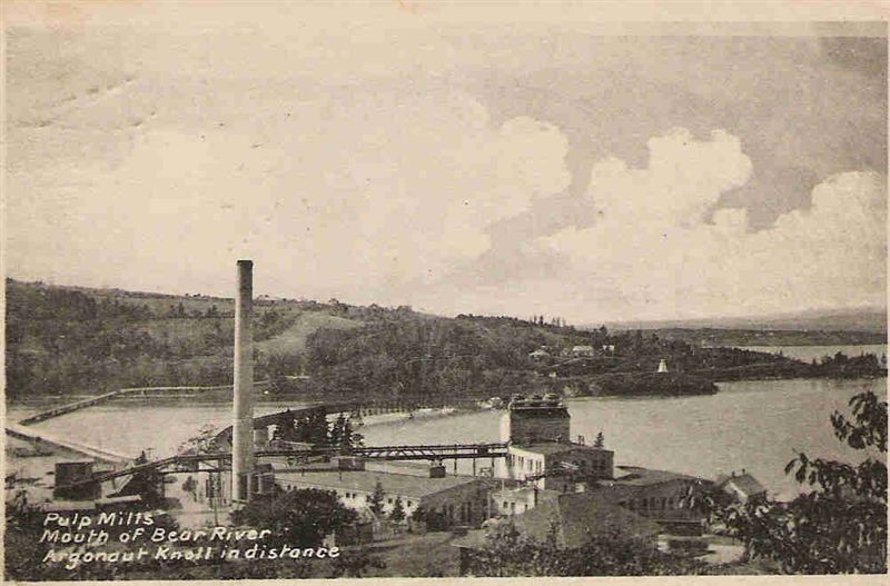 The Bear River Pulp Company Inc. Pipeline The Bear River-based Clark Brothers built their pulp mill at the mouth of the Bear River c1919; their company was in receivership by 1923. In 1924 the Bear River Pulp Company Inc. was incorporated and bought all the pulp mill assets from the receiver. However, in spite of much local optimism the mill suffered from a collapsing North American pulp market and never went into commercial production. The mill’s brick superstructure was still in place in the 1940s and 1950s and spoke quietly of dreams never realized.