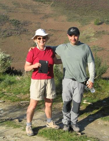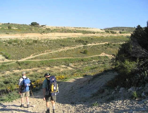 We next met our Swiss couple of Day 1 again, they also having a rest and a bite along the trail by a culvert. Richard has sufficient command of English to foster reasonable communication, Fabianna working on it. Richard was a gardener, and then took a two year stint in the Swiss army, which he did not like. He comes across as being tough as nails physically but with a broad sensitive streak. They slept under the stars last night and will continue to do so as long as the weather allows. He walked (climbed is more descriptive) a couple kilometres up to an abandoned monastery on a peak on the north side of the valley the previous evening to explore the ruin. Once there at sundown he rang the old bell twice – once for he and Fabianna, and once for world peace – how’s that for romantic sensitivity!! He has taken to Mike. You’ll remember he had bad feet in Pamplona; well he worked himself through it. Fabianna, slim and probably 5’9” and blond, still does not look like this walking is her thing, and is now sore in the hips and lower thighs. She has a remarkable tattoo on her left ankle – says she has had it for about 10 years (I suspect she is early 30’s) and that it took 7 hours and much pain to apply! This couple walks fast.