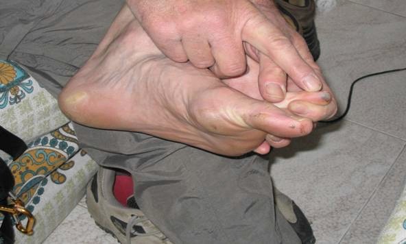 Nan, our new 23ish American recruit has a foot problem – blisters – and Mike convinced her to thread the blisters – brave little thing follows instructions! She is the daughter of a NY symphony musician couple and home is a building facing Central Park !! Goes to a “geek” school but took the year off to try and find herself; spent one year in Maine . Good kid and she walked with us for a couple days.