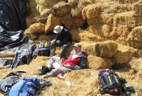 I did not sleep well – perhaps too pumped up after the climb. Made a couple trips to the bathroom and finally fell off in a fitful sleep somewhere around 2 pm amid the music of a 100 snores and the odd fart. Just before turning in I met a guy from Guelph, about 2 sheets to the wind, who had hooked up with our Swiss acquaintances from the afternoon.