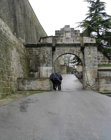 We decided on the Napoleon route over the top. Yesterday it had snowed quite heavily up there – something in the order of 8 inches – and a number of pilgrims were forced to turn back and return to St. Jean . The route is dangerous in bad weather and in 2000 they lost two individuals to the elements on the top. The Camino office indicated the forecast is for good weather today. They have been sending off about 60 pilgrims a day now, which is average for this time of year even tho this is a Holy Year and the traffic is anticipated to increase substantially to an estimated 5x the normal. The volunteer (Brit) passport manager suggested a number of new private albergues had been set up in anticipation thereof.